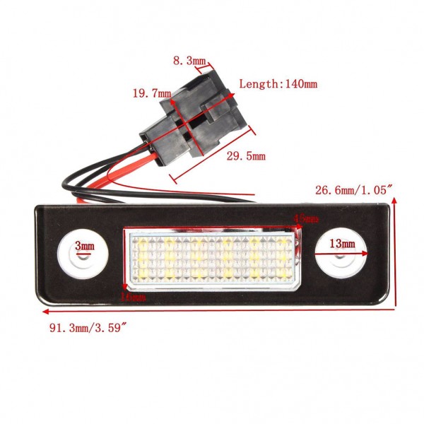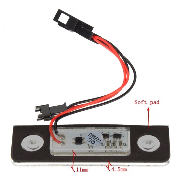 Přímá výměna za seriové osvětlení SPZ s klasickými žárovkami. Místo žárovek, osvětlení obsahuje několik řad bílých ledek.