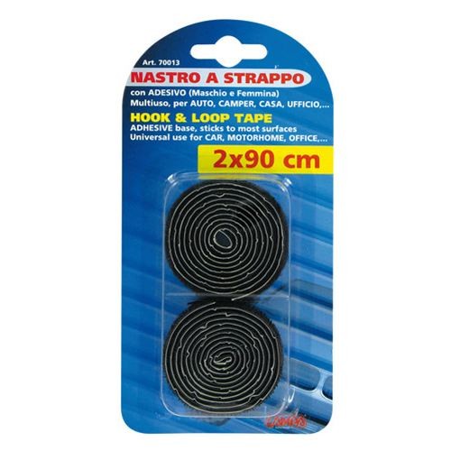 2 kusy lepících pásek o délce 90cm, jako suchý zip. Slouží k upevnění předmětů s možností rychlého odepnutí. Jedna strana pásky se nalepí do interiéru vozu a druhá na předmět, který chcete upevnit na protilehlý suchý zip. Například subwooferu v kufru vozu, či různých držáků a brašen.