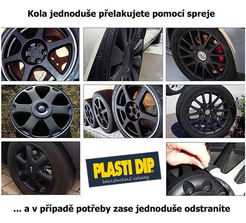 Za pozornost stojí i Plasti Dip Spray , který si své využití nachází zejména v automobilovém průmyslu pro svou velmi jednoduchou použitelnost . Jde prakticky o obdobný gumový nátěr , který je však rovnou dodáván ve formě spreje . Použít jej můžete prakticky na všechny automobilové díly. Jednoduše si tak například můžete na svém autě udělat pogumovaný nátěr, který nejenže ochrání původní lak , ale dodá vašemu autu naprosto skvělý vzhled podobný jako byste na auto aplikovali matnou fólii . Zajímavé to může být z toho hlediska, že každý rok tak můžete změnit barvu svého auta, nebo kol . Třeba i každou sezónu se tak můžete na srazu ukázat v jiné podobě, což určitě přitáhne zvědavé pohledy. Gumový nátěr, nebo sprej se dá použít prakticky na jakýkoliv materiál. Nemusí to být zrovna auto, tekutá guma se používá i na motocykly a lodě . Také se dá tento materiál aplikovat jen na určitou část, např. jen na kapotu .Tekutou gumu můžete použít v podstatě na všechno, například i na elektroniku, či jiné věci u kterých se bojíte poškrábání . Materiál schne na vzduchu a po nanesení vám na automobilu vznikne pogumovaná vrstva, kterou v případě potřeby jednoduše odstraníte pouhým stáhnutím. Takové řešení je přitom levnější, než na auto aplikovat fólie. Plasti Dip můžete například také aplikovat na disky pro jejich větší ochranu například v zimním období.
