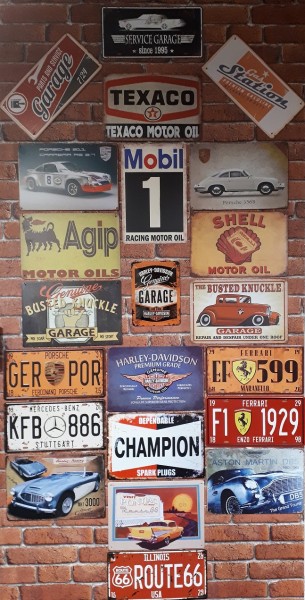Originální plechová cedule s retro motivem s otvory pro upevnění na zeď. Cedule je z kvalitního a silného podkladu u kterého nehrozí prohnutí či zlomení. Vybraný motiv je vždy pečlivě natištěn. Elegantní doplněk a dekorace pro Váš byt, garaž, či prodejnu.