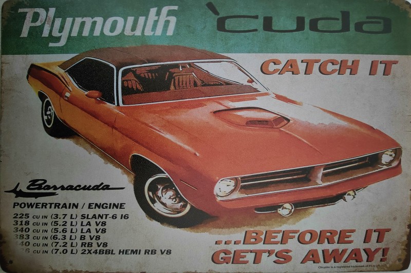 Originální plechová cedule s retro motivem s otvory pro upevnění na zeď. Vybraný motiv je vždy pečlivě natištěn. Elegantní doplněk a dekorace pro Váš byt, garaž, či prodejnu.