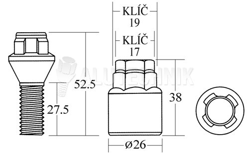 Sada obsahuje 4ks šroubů a 1kus speciálního ořechu pro klíč 17/19mm. K ořechu (klíči) je v sadě určen speciální kód, podle něhož lze objednat při ztrátě ořechu, nový ořech. Bez kódu je nemožné nový ořech objednat. Každý šroub má specifickou hlavu pro daný ořech, tedy ořechy s jiným kódem, nebudou pasavat na vaše šrouby. Kartičku s kódem proto pečlivě uschovejte.