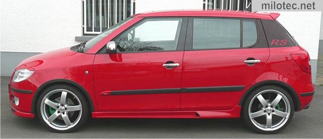 Designový polep zadních sloupků z černé lesklé vysoce jakostní UV stabilní fólie s logem RS. Tato 4-dílná sada je určena pro Škodu Fabii II. hatback. Lepení je součástí výrobku.