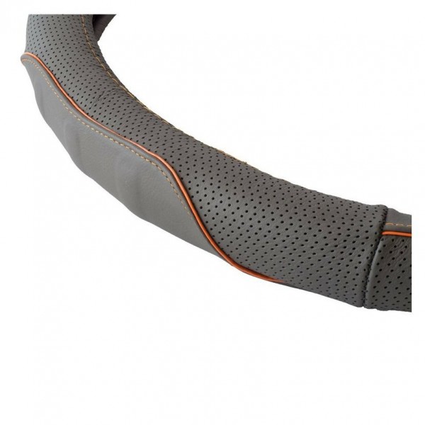 Potah volantu pravá kůže. Určeno pro volanty o průměru 37 - 39 cm (veškeré potahy volantu jsou pružnější a je možné je použít na tento rozměr volantu). Potah na volant zlepšuje řízení vozidla, zabraňuje klouzání rukou po volantu, při extrémních teplotách umožňuje příjemnější kontakt rukou s tělesem volantu, chrání volant před opotřebením. Velmi kvalitní potah volantu s atraktivním vzhledem z pravé kůže, šedý s oranžovým prošitím od známé firmy 4Cars.
