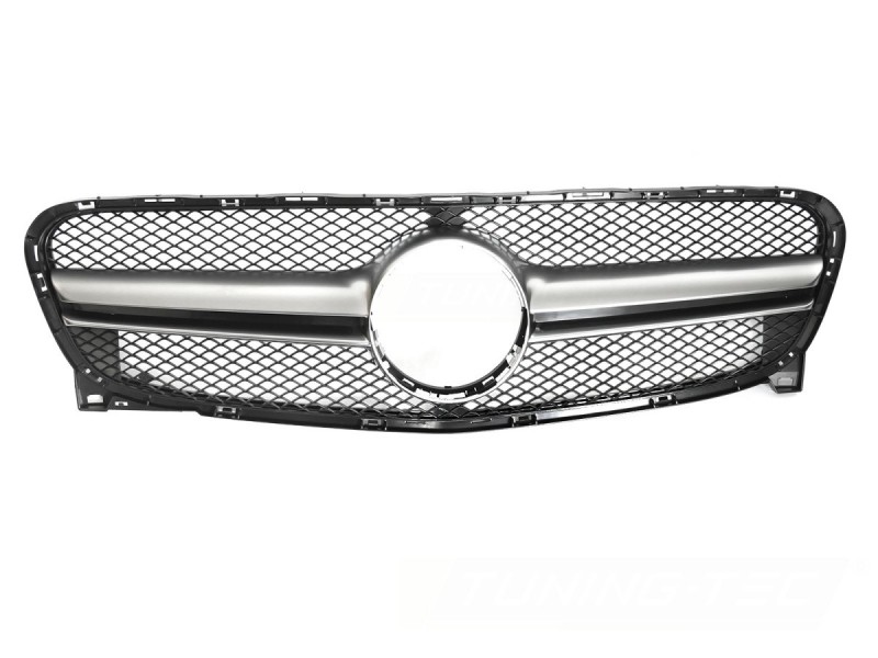 Přední maska v provedení černá – stříbrná je ideální volbou pro oživení vzhledu vozu Mercedes-Benz GLA X156. Kombinace černého základu a stříbrných prvků dodá vozu elegantní a zároveň sportovní charakter.