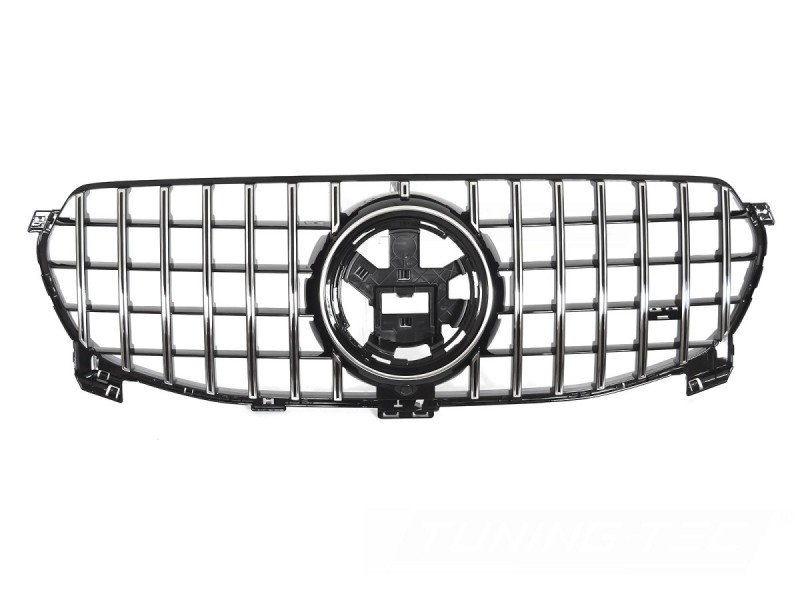 Přední maska GT STYLE v provedení lesklá černá s chromovými prvky dodá vašemu vozu Mercedes GLE elegantní a moderní vzhled. Jedná se o kvalitní náhradu originální mřížky chladiče se zachováním plné funkčnosti všech systémů.