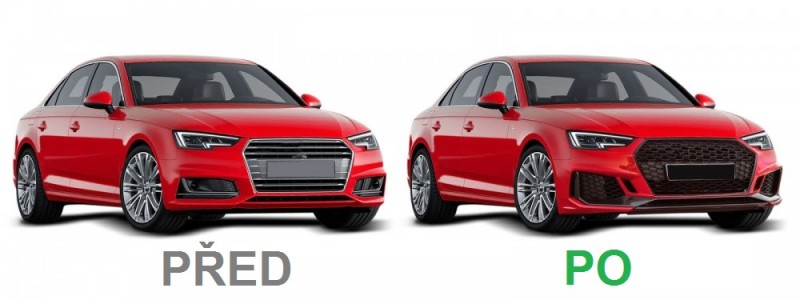 - přední nárazník sportovního stylu s otvory pro parkovací senzory (PDC) pro vůz Audi A4 B9, 2015-2019