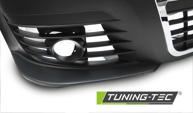 přední nárazník s chromovou maskou a mřížkami s otvorami pro mlhovky.