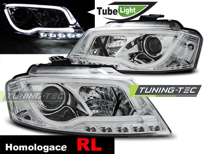 Cena za 2ks – pár. Tube light, to je originalita a styl pro Váš vůz. Lampy inspirovány vzhledem nejnovější řady vozidel s ledkovým osvětlením a neon efektem, ozvláštní Váš vůz a dodají mu agresivní vzhled. Vše je připraveno tak, aby světlomety přesně pasovaly na místo původních. To vše v nejvyšší možné kvalitě s homologací pro provoz na veřejných komunikacích. Podpora elektrického naklápění, motorky pasují s originálních světel. 5x led a 2x tube light v každém světle. LED můžou být použity jako denní svícení. Tak jinak mají zesílenou svítivost a jsou homologovány RL jako denní svícení. Světlo tlumené je čočka pro žárovku H7, dálkové je pro žárovku H1 (H1 v ceně). Parkovací = LED+Tube light. Blinkr = 21W.
