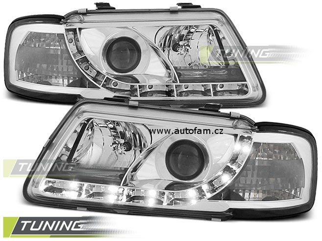 Cena za 2ks – pár. Daylight, to je originalita a styl pro Váš vůz. Lampy inspirovány vzhledem nejnovější řady vozidel s ledkovým osvětlením ozvláštní Váš vůz a dodají mu agresivní vzhled. Vše je připraveno tak, aby světlomety přesně pasovaly na místo původních. To vše v nejvyšší možné kvalitě s homologací pro provoz na veřejných komunikacích. Podpora elektrického naklápění. 8x led v každém led pásu. Pro žárovky H1 + H1, parkovací = LED, blinkr = 21W. H1 v ceně.