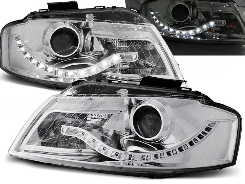 Cena za 2ks – pár. Daylight, to je originalita a styl pro Váš vůz. Lampy inspirovány vzhledem nejnovější řady vozidel s ledkovým osvětlením ozvláštní Váš vůz a dodají mu agresivní vzhled. Vše je připraveno tak, aby světlomety přesně pasovaly na místo původních. To vše v nejvyšší možné kvalitě s homologací pro provoz na veřejných komunikacích. Podpora elektrického naklápění včetně motorků. 12x led v každém led pásu. Tlumené a dálkové světlo v jedné čočce s žárovkou H9. Parkovací = LED. Blinkr = 21W.