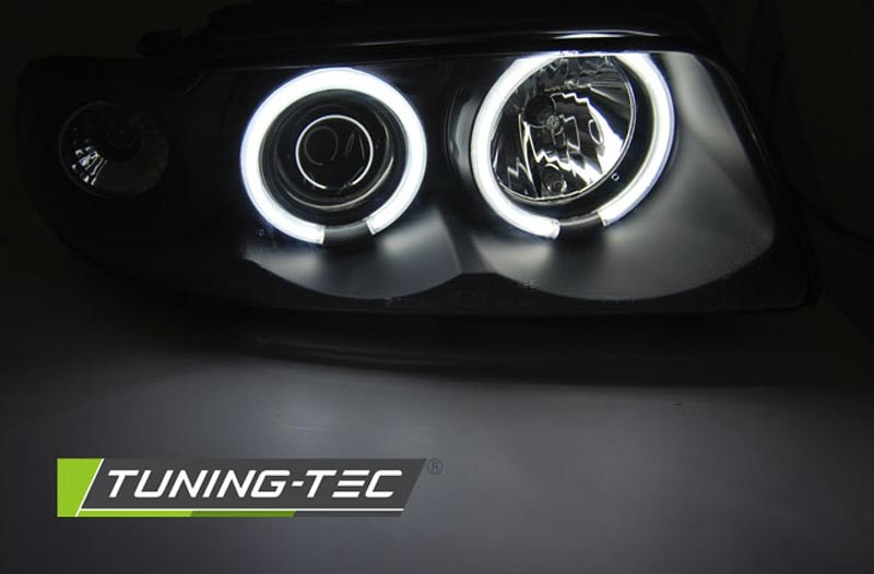 Cena za 2ks – pár. Přední světla, okořeněna o takzvané andělské kroužky, svítící okolo parabol a sloužící jako parkovací světlo. Efekt rozsvícených očí. Vše plně homologováno pro provoz na veřejných komunikacích. Dopřejte svému vozu neobyčejný nový design pouhým přehozením za seriové světla. Podpora elektrického naklápění světel. 2x svítící kroužek v každém světle. Pro žárovky H1 + H1, parkovací = kroužky, blinkr = 21W.