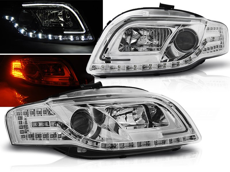 Cena za 2ks, pár. Tube light, to je originalita a styl pro Váš vůz. Lampy inspirovány vzhledem nejnovější řady vozidel s ledkovým osvětlením a neon efektem, ozvláštní Váš vůz a dodají mu agresivní vzhled. Vše je připraveno tak, aby světlomety přesně pasovaly na místo původních. To vše v nejvyšší možné kvalitě s homologací pro provoz na veřejných komunikacích. Podpora elektrického naklápění, včetně zabudovaných motorků. 10x led a 1x tube light v každém světle, jako poziční světlo. LED jsou použity i v blinkru. Světlo tlumené je čočka pro žárovku H7, dálkové je pro žárovku H1, žárovky jsou v ceně. Parkovací = LED Tube light + diody. Blinkr = LED.