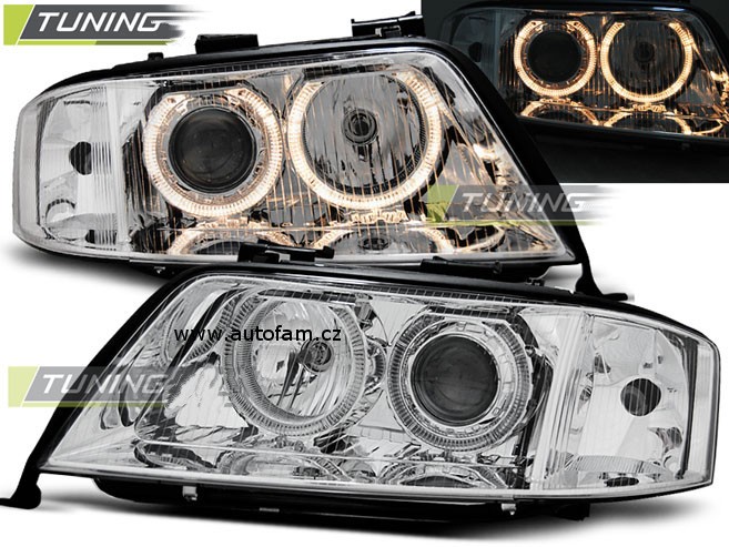 Cena za 2ks – pár. Přední světla, okořeněna o takzvané andělské kroužky, svítící okolo parabol a sloužící jako parkovací světlo. Efekt rozsvícených očí. Vše plně homologováno pro provoz na veřejných komunikacích. Dopřejte svému vozu neobyčejný nový design pouhým přehozením za seriové světla. Podpora elektrického naklápění světel. 2x svítící kroužek v každém světle. Žárovky H7 + H7 v ceně. Blinkr 21W, parkovací = kroužky.