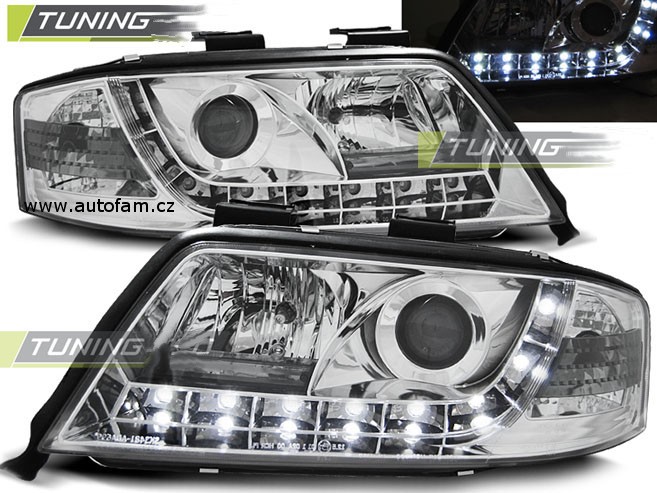 Cena za 2ks – pár. Daylight, to je originalita a styl pro Váš vůz. Lampy inspirovány vzhledem nejnovější řady vozidel s ledkovým osvětlením ozvláštní Váš vůz a dodají mu agresivní vzhled. Vše je připraveno tak, aby světlomety přesně pasovaly na místo původních. To vše v nejvyšší možné kvalitě s homologací pro provoz na veřejných komunikacích. Podpora elektrického naklápění. 8x led v každém led pásu. Žárovky H1 + H1 v ceně. Blinkr 21W. parkovací = LED.