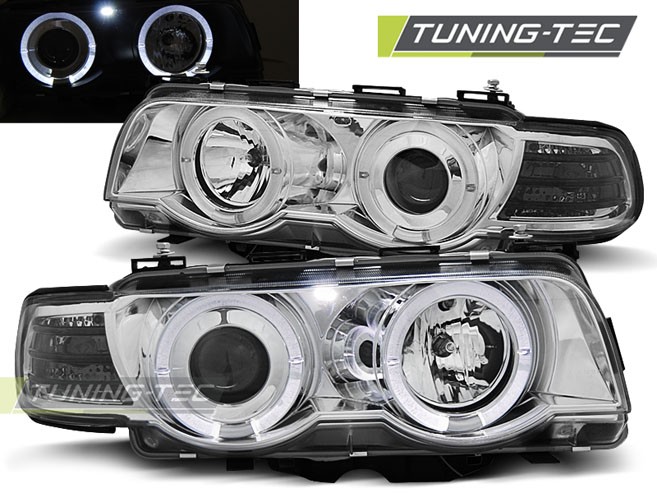 Cena za 2ks – pár. Přední světla, okořeněna o takzvané andělské kroužky, svítící okolo parabol a sloužící jako parkovací světlo. Efekt rozsvícených očí. Vše plně homologováno pro provoz na veřejných komunikacích. Dopřejte svému vozu neobyčejný nový design pouhým přehozením za seriové světla. Elektrické nastavování sklonu světel včetně motorků. 2x svítící kroužek v každém světle. Žárovky H7 (tlumená) + H1 (dálková) v ceně. Blinkr 21W, parkovací = kroužky.