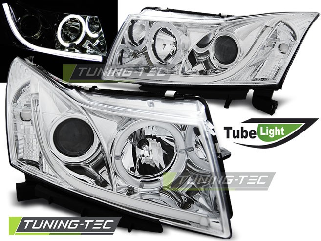 Cena za 2ks – pár. Tube light, to je originalita a styl pro Váš vůz. Lampy inspirovány vzhledem nejnovější řady vozidel s ledkovým osvětlením a neon efektem a navíc svítícími kroužky okolo parabol ozvláštní Váš vůz a dodají mu agresivní vzhled. Vše je připraveno tak, aby světlomety přesně pasovaly na místo původních. To vše v nejvyšší možné kvalitě. Určeno pro trh USA, nemají EU homologaci. Manuální naklápění světel. 2x led kroužek a tube light v každém světle. Osazeno žárovky H7-tlumené + H1-dálkové. Parkovací = LED kroužky + Tube light. Blinkr = 21W.