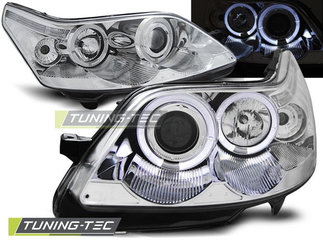 Cena za 2ks – pár. Přední světla, okořeněna o takzvané andělské kroužky, svítící okolo parabol a sloužící jako parkovací světlo. Efekt rozsvícených očí. Vše plně homologováno pro provoz na veřejných komunikacích. Dopřejte svému vozu neobyčejný nový design pouhým přehozením za seriové světla. Manuální nastavení sklonu světel. 2x svítící kroužek v každém světle. Žárovky H1 + H1 v ceně. Parkovací = kroužky. Blinkr 21W.