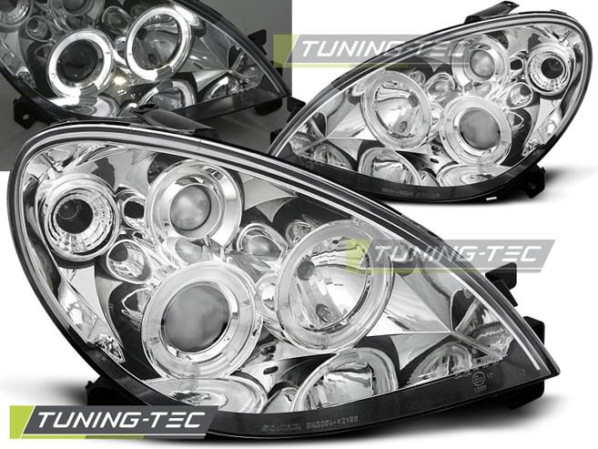 Cena za 2ks – pár. Přední světla, okořeněna o takzvané andělské kroužky, svítící okolo parabol a sloužící jako parkovací světlo. Efekt rozsvícených očí. Vše plně homologováno pro provoz na veřejných komunikacích. Dopřejte svému vozu neobyčejný nový design pouhým přehozením za seriové světla. Manuální nastavení sklonu světel. 2x svítící kroužek v každém světle. Žárovky H1 + H1 v ceně. Parkovací = kroužky + diody. Blinkr 21W.