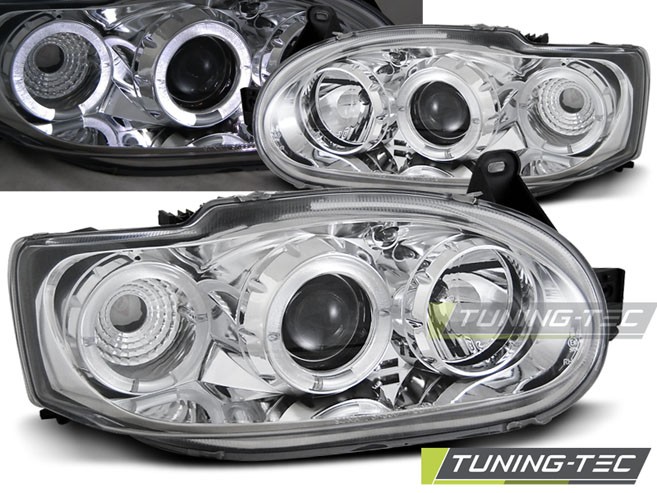 Cena za 2ks – pár. Přední světla, okořeněna o takzvané andělské kroužky, svítící okolo parabol a sloužící jako parkovací světlo. Efekt rozsvícených očí. Vše plně homologováno pro provoz na veřejných komunikacích. Dopřejte svému vozu neobyčejný nový design pouhým přehozením za seriové světla. Podpora elektrického naklápění. 2x svítící kroužek v každém světle. Žárovky H1 + H1 v ceně. Parkovací = kroužky. Blinkr - 21W.