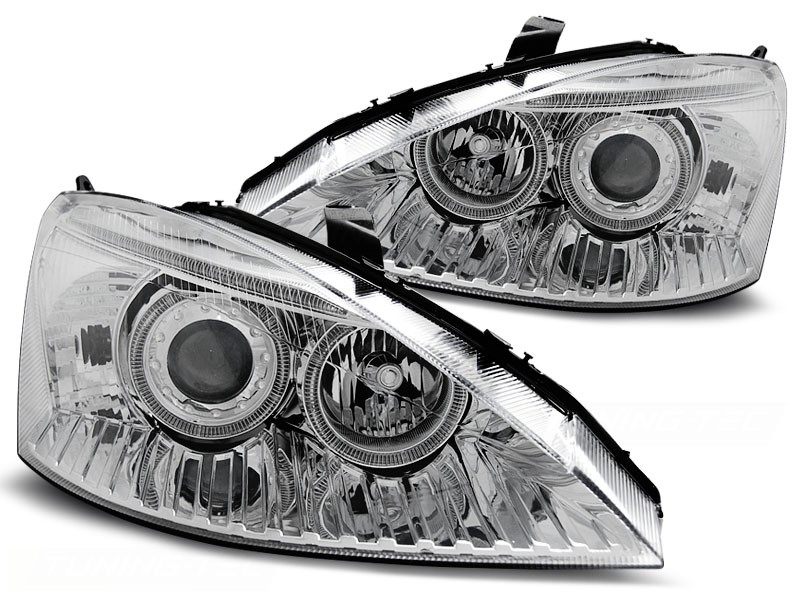 Cena za 2ks – pár. Přední světla, okořeněna o takzvané andělské kroužky, svítící okolo parabol a sloužící jako parkovací světlo. Efekt rozsvícených očí. Vše plně homologováno pro provoz na veřejných komunikacích. Dopřejte svému vozu neobyčejný nový design pouhým přehozením za seriové světla. Podpora elektrického naklápění světel. 2x svítící kroužek v každém světle. Pro žárovky H7 + H7. Parkovací = kroužky. Blinkr - 21W. Konektor pro model 2001-2004.