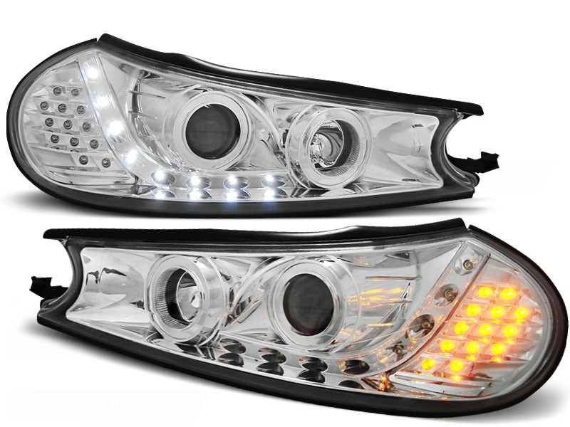 Cena za 2ks – pár. Daylight, to je originalita a styl pro Váš vůz. Lampy inspirovány vzhledem nejnovější řady vozidel s ledkovým osvětlením ozvláštní Váš vůz a dodají mu agresivní vzhled. Vše je připraveno tak, aby světlomety přesně pasovaly na místo původních. To vše v nejvyšší možné kvalitě s homologací pro provoz na veřejných komunikacích. Manualní nastavení sklonu světel. 8x led v každém led pásu. Žárovky H1 tlumené, H1 dálkové v ceně. Blinkr - 13 x LED. Parkovací - LED.