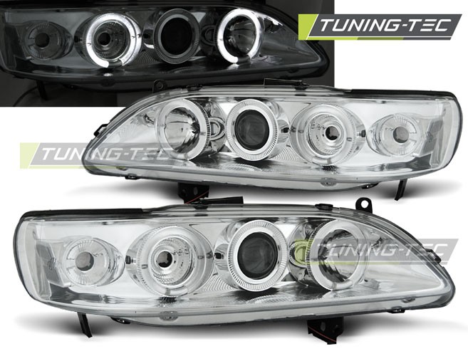 Cena za 2ks – pár. Přední světla, okořeněna o takzvané andělské kroužky, svítící okolo parabol a sloužící jako parkovací světlo. Efekt rozsvícených očí. Určeno pro vývoz do USA, nemají E homologaci.. Dopřejte svému vozu neobyčejný nový design pouhým přehozením za seriové světla. Manuální nastavení sklonu světel. 2x svítící kroužek v každém světle. Žárovky H1 + H1 v ceně. Parkovací = kroužky.