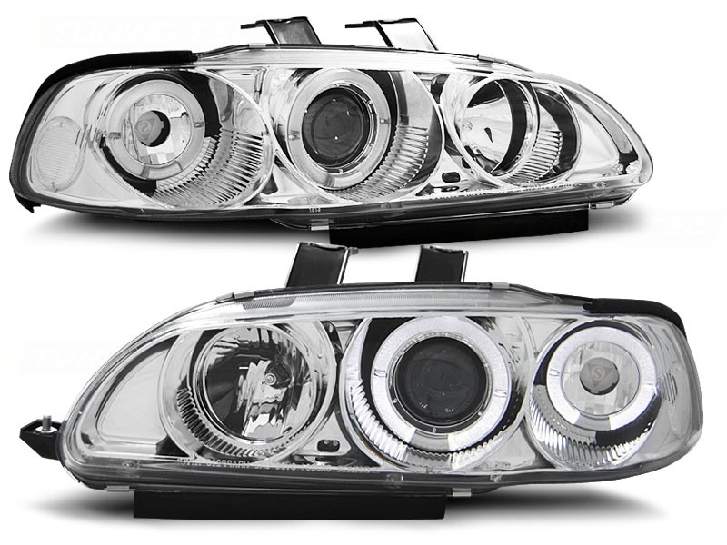 Cena za 2ks – pár. Přední světla, okořeněna o takzvané andělské kroužky, svítící okolo parabol a sloužící jako parkovací světlo. Efekt rozsvícených očí. Vše plně homologováno pro provoz na veřejných komunikacích. Dopřejte svému vozu neobyčejný nový design pouhým přehozením za seriové světla. Manuální nastavení naklápění světel. 2x svítící kroužek v každém světle. Žárovky H1 + H1 v ceně. Parkovací = kroužky. Blinkr - 21W. Ne pro anglickou verzi.