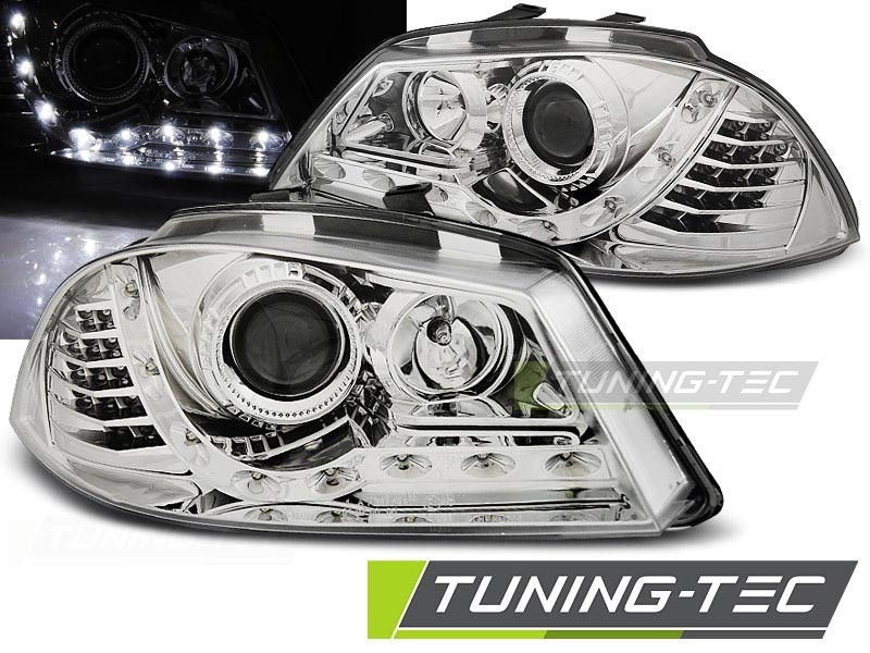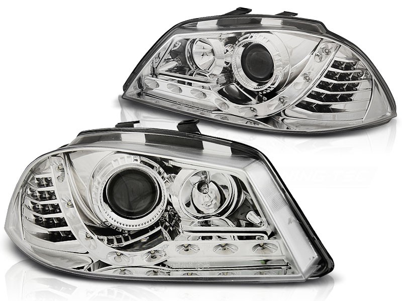 Cena za 2ks – pár. Daylight, to je originalita a styl pro Váš vůz. Lampy inspirovány vzhledem nejnovější řady vozidel s ledkovým osvětlením ozvláštní Váš vůz a dodají mu agresivní vzhled. Vše je připraveno tak, aby světlomety přesně pasovaly na místo původních. To vše v nejvyšší možné kvalitě s homologací pro provoz na veřejných komunikacích. Podpora elektrického naklápění světel. 8x led v každém led pásu. Pro žárovky H1 tlumené, H1 dálkové (v ceně). Parkovací = LED. Blinkr je také z LED.