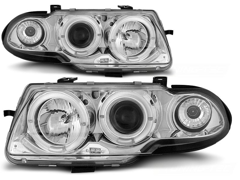 Cena za 2ks – pár. Přední světla, okořeněna o takzvané andělské kroužky, svítící okolo parabol a sloužící jako parkovací světlo. Efekt rozsvícených očí. Vše plně homologováno pro provoz na veřejných komunikacích. Dopřejte svému vozu neobyčejný nový design pouhým přehozením za seriové světla. Manuální nastavení naklápění světel. 2x svítící kroužek v každém světle. Žárovky H1 + H1 v ceně. Parkovací = kroužky. Blinkr - 21W.