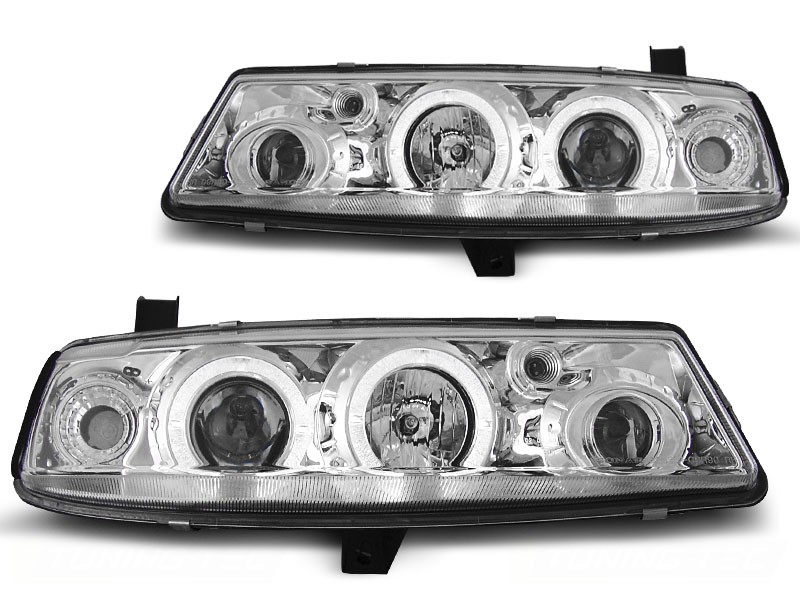 Cena za 2ks – pár. Přední světla, okořeněna o takzvané andělské kroužky, svítící okolo parabol a sloužící jako parkovací světlo. Efekt rozsvícených očí. Vše plně homologováno pro provoz na veřejných komunikacích. Dopřejte svému vozu neobyčejný nový design pouhým přehozením za seriové světla. Podpora elektrického naklápění světel. 2x svítící kroužek v každém světle. Žárovky H1 + H1. Parkovací = kroužky. Blinkr - 21W.