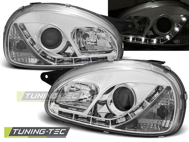 Cena za 2ks – pár. Daylight, to je originalita a styl pro Váš vůz. Lampy inspirovány vzhledem nejnovější řady vozidel s ledkovým osvětlením ozvláštní Váš vůz a dodají mu agresivní vzhled. Vše je připraveno tak, aby světlomety přesně pasovaly na místo původních. To vše v nejvyšší možné kvalitě s homologací pro provoz na veřejných komunikacích. Podpora elektrického naklápěnÍ světel. 6x led v každém led pásu. Pro žárovky H1 tlumené, H1 dálkové (v ceně). Parkovací - LED. Blinkr 21W.