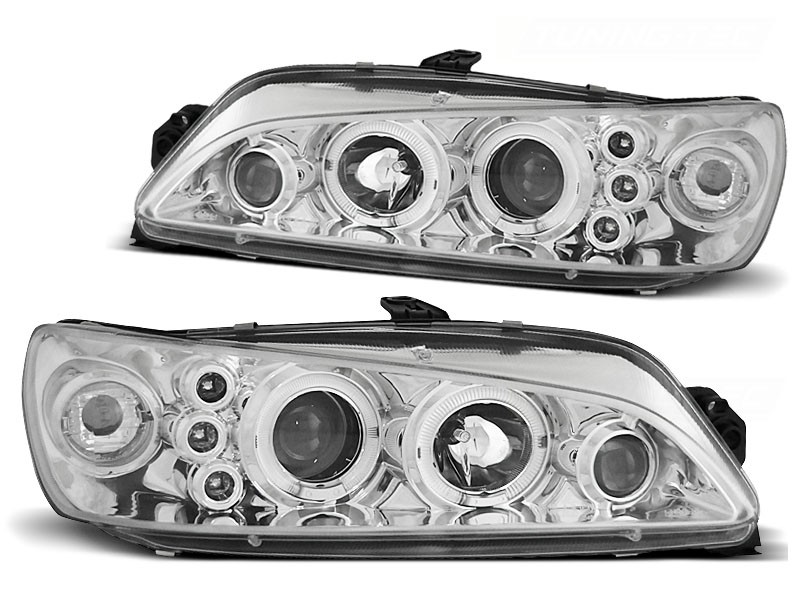 Přední světla, okořeněna o takzvané andělské kroužky, svítící okolo parabol a sloužící jako parkovací světlo. Efekt rozsvícených očí. Vše plně homologováno pro provoz na veřejných komunikacích. Dopřejte svému vozu neobyčejný nový design pouhým přehozením za seriové světla.