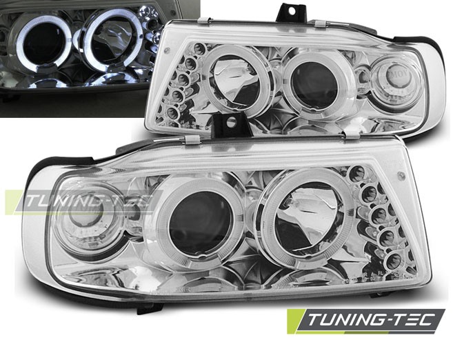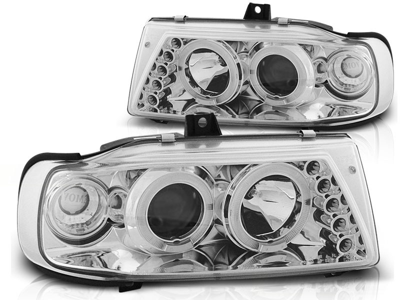Cena za 2ks – pár. Přední světla, okořeněna o takzvané andělské kroužky, svítící okolo parabol a sloužící jako parkovací světlo. Efekt rozsvícených očí. Dopřejte svému vozu neobyčejný nový design pouhým přehozením za seriové světla.Vše plně homologováno pro provoz na veřejných komunikacích. Manuální naklápění světel. 2 x svítící kroužek v každém světle. Žárovky H1 + H1 v ceně. Parkovací = kroužky + diody. Blinkr - 21W.