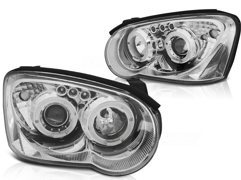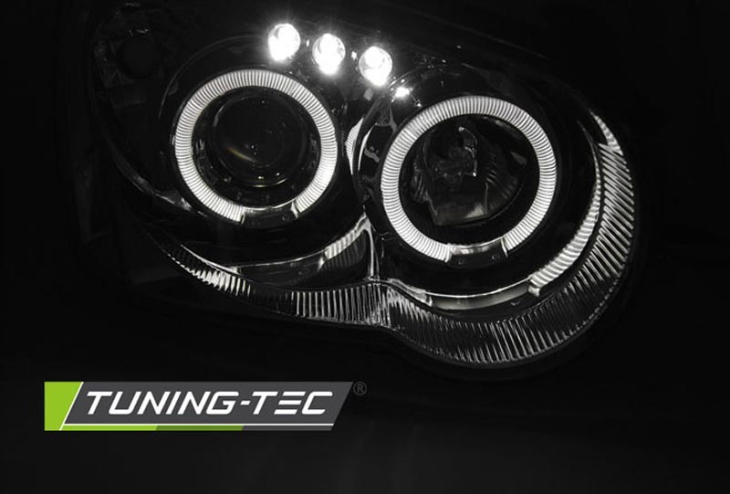 Cena za 2ks – pár. Přední světla, okořeněna o takzvané andělské kroužky, svítící okolo parabol a sloužící jako parkovací světlo. Efekt rozsvícených očí. Určeno pro vývoz do USA, nemají homologační E. Dopřejte svému vozu neobyčejný nový design pouhým přehozením za seriové světla. Manuální naklánění sklonu světel. 2x svítící kroužek v každém světle + 3x led.