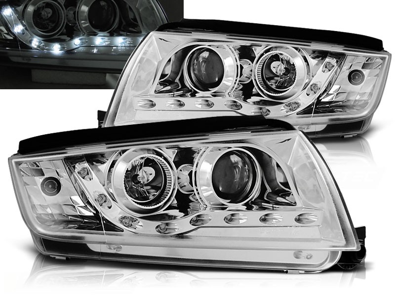 - přední projektorové světlomety s LED parkovacím světlem pro vůz Škoda Fabia I 1999-2008