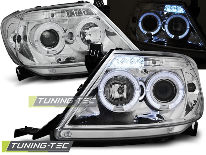 Cena za 2ks – pár. Přední světla, okořeněna o takzvané andělské kroužky, svítící okolo parabol a sloužící jako parkovací světlo. Efekt rozsvícených očí. Určeno pro vývoz do USA, nemají homologační E. Dopřejte svému vozu neobyčejný nový design pouhým přehozením za seriové světla. Manuální naklánění sklonu světel. 2x svítící kroužek v každém světle. Žárovky H1 tlumené. + H1 dálkové (v ceně). Parkovací = kroužky. Blinkr - 21W.