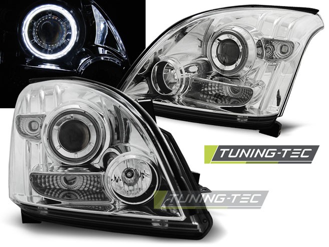 Cena za 2ks – pár. Přední světla, okořeněna o takzvané andělské kroužky, svítící okolo parabol a sloužící jako parkovací světlo. Efekt rozsvícených očí. Dopřejte svému vozu neobyčejný nový design pouhým přehozením za seriové světla. Určeno pro trh do USA, nemá evropskou homologaci. Manuální naklápění sklonu světel. 1 x svítící kroužek v každém světle, system CCFL (jasnější bílé světlo). Žárovky H1 + H1dálková ( H1 v ceně.) Parkovací = kroužky. Blinkr - 21W.