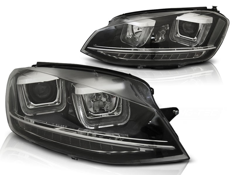 Cena za 2ks – pár. U-type, to je originalita a styl pro Váš vůz. Lampy inspirovány vzhledem nejnovější řady vozidel s ledkovým osvětlením ozvláštní Váš vůz a dodají mu agresivní vzhled. Vše je připraveno tak, aby světlomety přesně pasovaly na místo původních. To vše v nejvyšší možné kvalitě s homologací pro provoz na veřejných komunikacích. Podpora elektrického naklápění včetně motorků v ceně.. LED mají homologaci RL pro provoz. Tedy můžou být legálně použity nejen jako parkovací světlomety, ale taktéž, jako denní svícení. Určeno pro vozy s žárovkami. Osazení: H7 - tlumené + dálkové. Parkovací + denní svícení = LED. Blinkr - 21W.