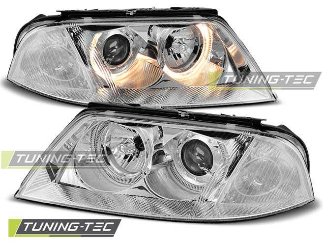 Cena za 2ks – pár. Přední světla, okořeněna o takzvané andělské kroužky, svítící okolo parabol a sloužící jako parkovací světlo. Efekt rozsvícených očí. Dopřejte svému vozu neobyčejný nový design pouhým přehozením za seriové světla.Vše plně homologováno pro provoz na veřejných komunikacích. Podpora elektrického naklápění světel. 2 x svítící kroužek v každém světle. Pro žárovky H7tlumené + H7dálkové. Parkovací = kroužky. Blinkr - 21W.