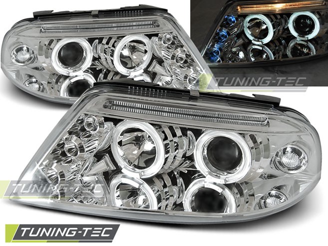 Cena za 2ks – pár. Přední světla, okořeněna o takzvané andělské kroužky, svítící okolo parabol a sloužící jako parkovací světlo. Efekt rozsvícených očí. Dopřejte svému vozu neobyčejný nový design pouhým přehozením za seriové světla.Vše plně homologováno pro provoz na veřejných komunikacích. Podpora elektrického naklápění světel. 2 x svítící kroužek v každém světle. Žárovky H1tlumené + H1dálkové v ceně. Parkovací = kroužky + led. Blinkr - 21W.