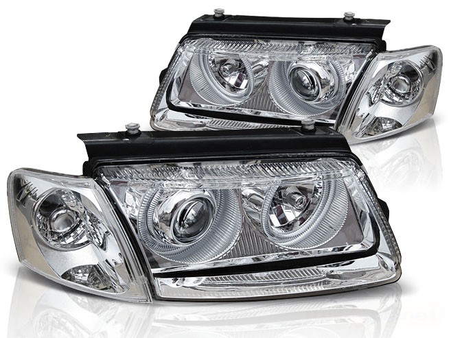Cena za 2ks – pár. Přední světla, okořeněna o takzvané andělské kroužky, svítící okolo parabol a sloužící jako parkovací světlo. Efekt rozsvícených očí. Dopřejte svému vozu neobyčejný nový design pouhým přehozením za seriové světla. Vše plně homologováno pro provoz na veřejných komunikacích. Podpora elektrického naklápění světel. 2 x svítící kroužek v každém světle. Pro žárovky H7 tlumené + H7 dálkové. Parkovací = kroužky. Blinkr - 21W oddělitelný (je součástí ceny).