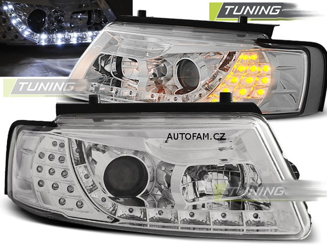 Cena za 2ks – pár. Daylight, to je originalita a styl pro Váš vůz. Lampy inspirovány vzhledem nejnovější řady vozidel s ledkovým osvětlením ozvláštní Váš vůz a dodají mu agresivní vzhled. Vše je připraveno tak, aby světlomety přesně pasovaly na místo původních. To vše v nejvyšší možné kvalitě s homologací pro provoz na veřejných komunikacích. Podpora elektrického naklápěnÍ světel. 8x led v každém led pásu. Pro žárovky H1 tlumené, H1 dálkové (v ceně). Parkovací - LED. Blinkr - LED.