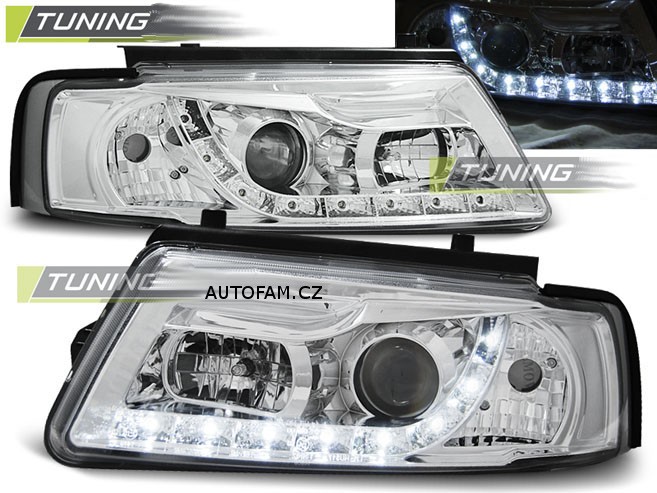 Cena za 2ks – pár. Daylight, to je originalita a styl pro Váš vůz. Lampy inspirovány vzhledem nejnovější řady vozidel s ledkovým osvětlením ozvláštní Váš vůz a dodají mu agresivní vzhled. Vše je připraveno tak, aby světlomety přesně pasovaly na místo původních. To vše v nejvyšší možné kvalitě s homologací pro provoz na veřejných komunikacích. Podpora elektrického naklápěnÍ světel. 8x led v každém led pásu. Pro žárovky H1 tlumené, H1 dálkové (v ceně). Parkovací - LED. Blinkr - 21W.