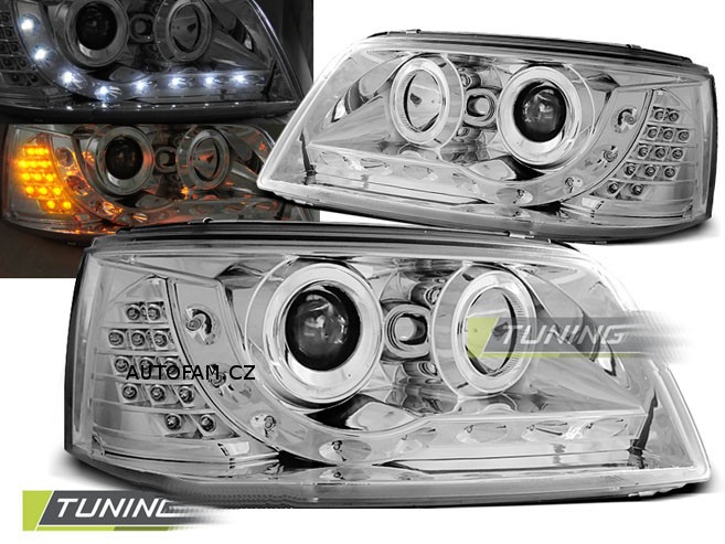 Cena za 2ks – pár. Daylight, to je originalita a styl pro Váš vůz. Lampy inspirovány vzhledem nejnovější řady vozidel s ledkovým osvětlením ozvláštní Váš vůz a dodají mu agresivní vzhled. Vše je připraveno tak, aby světlomety přesně pasovaly na místo původních. To vše v nejvyšší možné kvalitě s homologací pro provoz na veřejných komunikacích. Podpora elektrického naklápěnÍ světel včetně zabudovaných motorků. 8x led v každém led pásu. Pro žárovky H1 tlumené, H1 dálkové (v ceně). Parkovací - LED. Blinkr - LED.