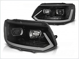Přední světla VW T5, 2010-2015, černá s LED DYNAMICKÝM BLINKREM