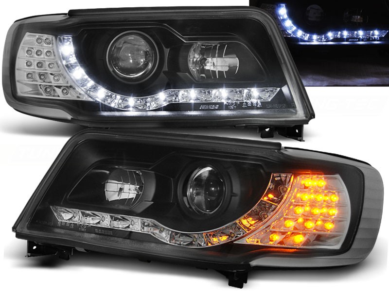Cena za 2ks – pár. Daylight, to je originalita a styl pro Váš vůz. Lampy inspirovány vzhledem nejnovější řady Audi s ledkovým osvětlením ozvláštní Váš vůz a dodají mu agresivní vzhled. Vše je připraveno tak, aby světlomety přesně pasovaly na místo původních. To vše v nejvyšší možné kvalitě s homologací pro provoz na veřejných komunikacích. Podpora elektrického naklápění. 8x led v každém led pásu. Žárovky H1 + H1, blinkry = LED, parkovací = LED.