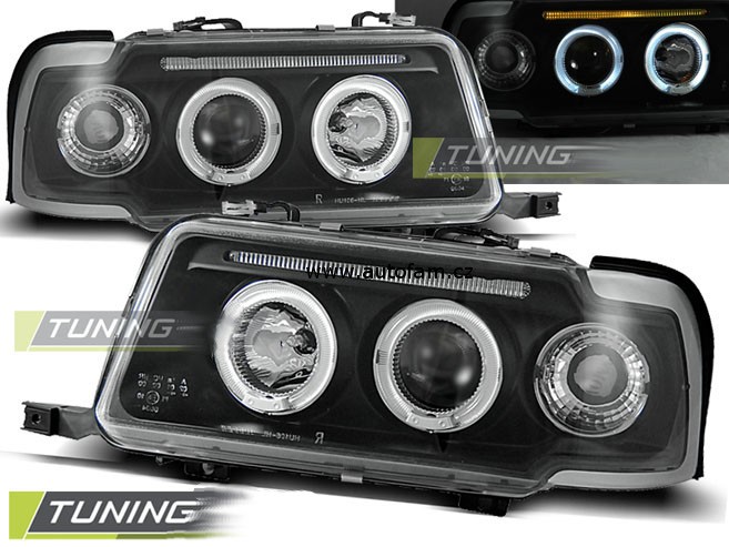 Cena za 2ks – pár. Přední světla, okořeněna o takzvané andělské kroužky, svítící okolo parabol a sloužící jako parkovací světlo. Efekt rozsvícených očí. Vše plně homologováno pro provoz na veřejných komunikacích. Dopřejte svému vozu neobyčejný nový design pouhým přehozením za seriové světla. Podpora elektrického naklápění světel. 2x svítící kroužek v každém světle. Žárovky H1 + H1, parkovací = kroužky, blinkr = 21W.