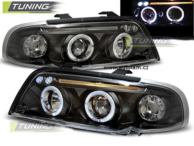 Cena za 2ks – pár. Přední světla, okořeněna o takzvané andělské kroužky, svítící okolo parabol a sloužící jako parkovací světlo. Efekt rozsvícených očí. Vše plně homologováno pro provoz na veřejných komunikacích. Dopřejte svému vozu neobyčejný nový design pouhým přehozením za seriové světla. Podpora elektrického naklápění světel. 2x svítící kroužek v každém světle. Žárovky H1 + H1 v ceně. Blinkr 21W, parkovací = kroužky + diody.
