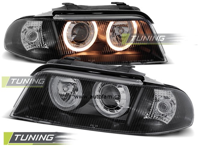 Cena za 2ks – pár. Přední světla, okořeněna o takzvané andělské kroužky, svítící okolo parabol a sloužící jako parkovací světlo. Efekt rozsvícených očí. Vše plně homologováno pro provoz na veřejných komunikacích. Dopřejte svému vozu neobyčejný nový design pouhým přehozením za seriové světla. Podpora elektrického naklápění světel. 2x svítící kroužek v každém světle. Pro žárovky H7 + H7. Parkovací = kroužky, blinkr = 21W.